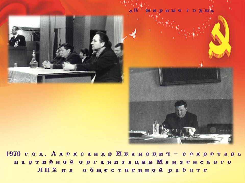 В 1970 году являлся секретарем партийной организации Манзенского ЛПХ