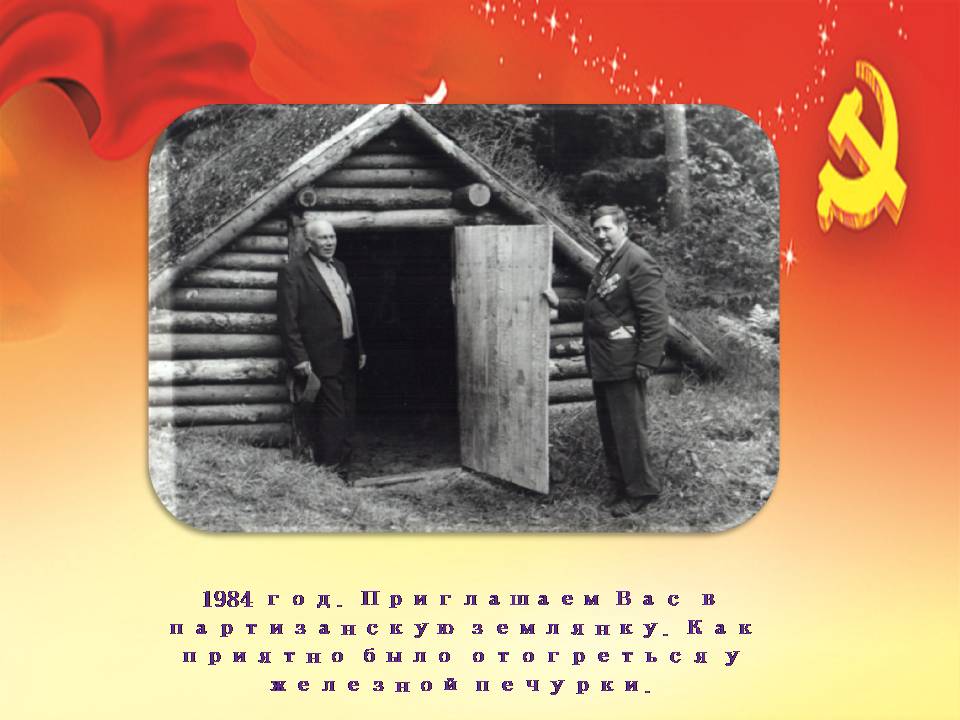 1984 год. Приглашаем Вас в партизанскую землянку. Как приятно было отогреться у железной печурки.