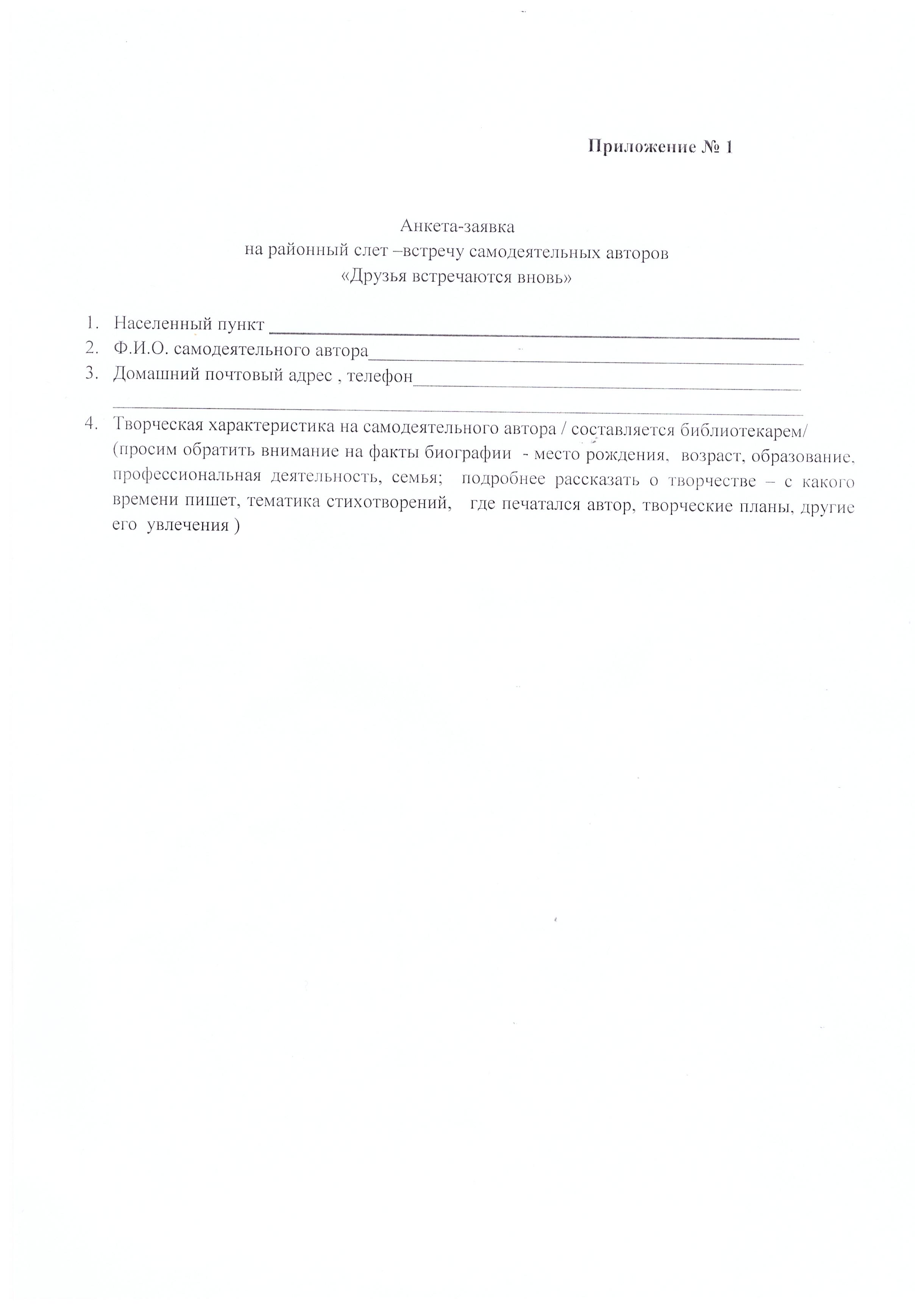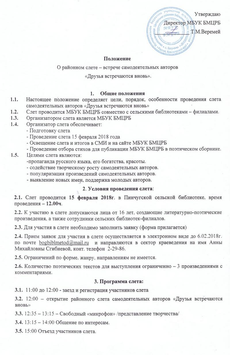 Районный Слет самодеятельных авторов «Друзья встречаются вновь»Приказ Положение Заявка