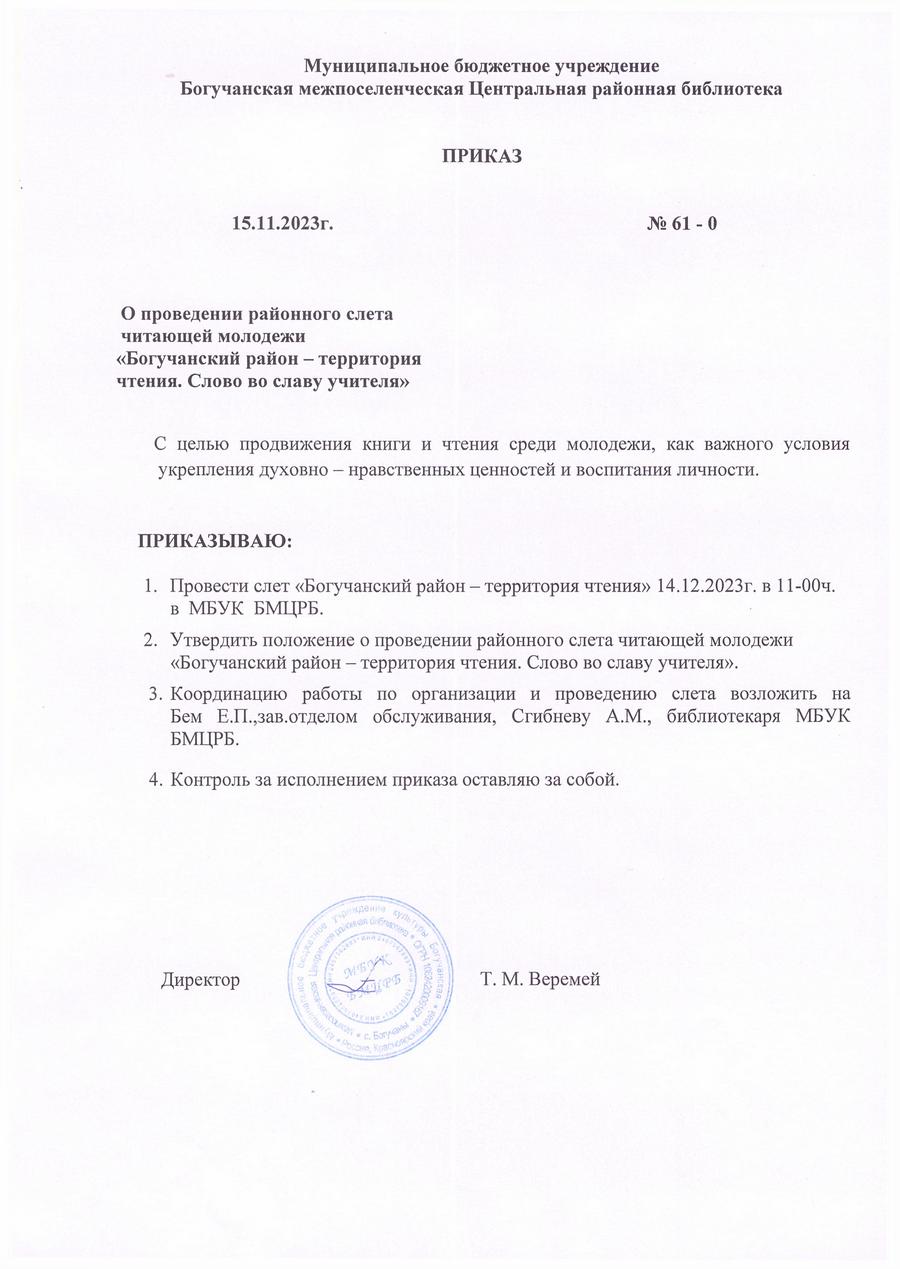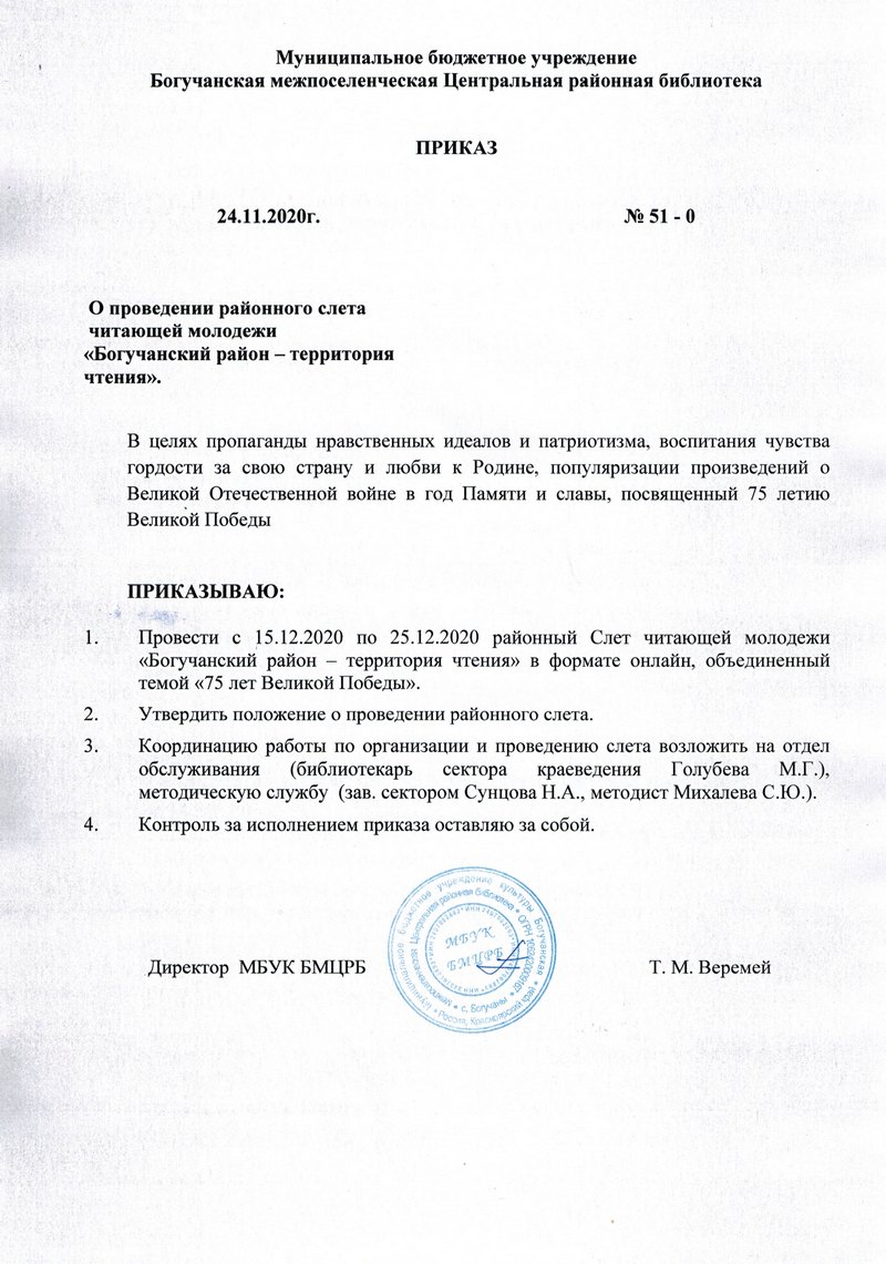 Районный Слет читающей молодежи «Богучанский район – территория чтения. С юбилеем, земля Богучанская!»Приказ Положение Заявка